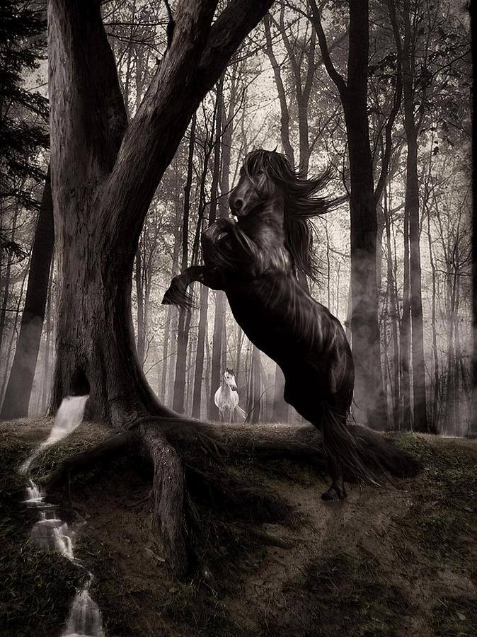 He stood straight, quite obvious, Nobility his birthright. He overlooked his Kingdom, from that hilltop, while he scanned the countryside. Proud, as his mares not far to his front and in knee-high pasture. The grass higher than the two black yearlings, stood at each mares’ side.