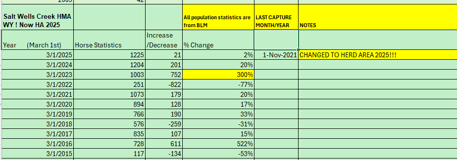 DIVIDE BASIN and SALT WELLS Herd Management Areas (HMAs) are being changed to Herd Areas (HAs) by BLM. Changing the designation from HMA to HA will allow the BLM to zero out all the wild horses. Furthermore, the captured and removed 2,485 wild horses will lose their legal protection as provided and stated in the 1971 Wild Horse and Burro Act.